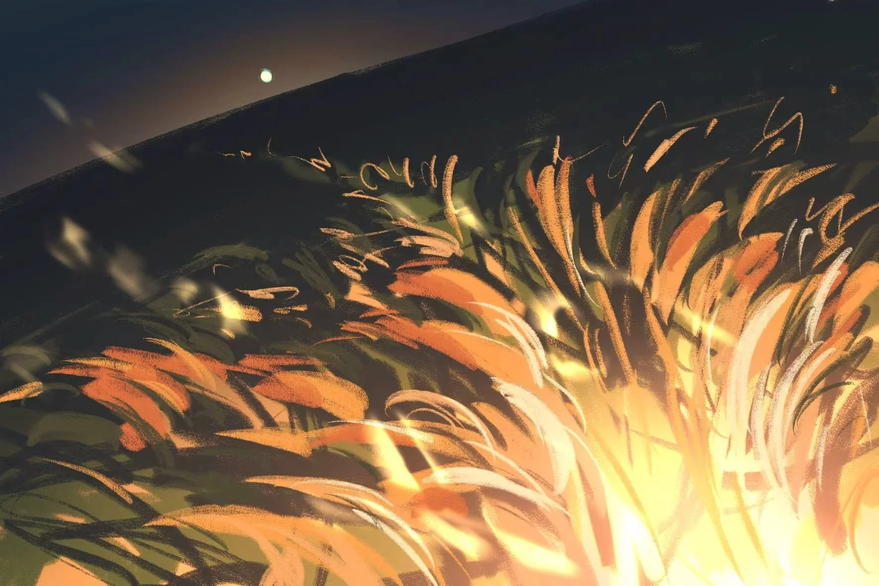 The wheat field behind my grandmother’s house, where I often take a walk in twilight, and watch farmers burn dry wheat stalks. When elderlies pass away, their family would come to the fields to burn the furniture they used in life, wishing the departed to find piece in their afterlives.